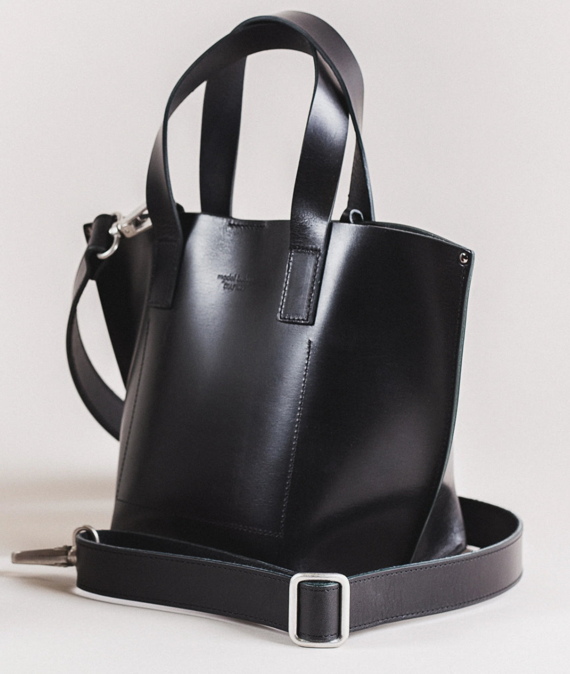 Die Model Bucket Bag ist eine kompakte, strukturierte Tasche, die Ihre täglichen Essentials verstaut, ohne aufzutragen. Ein Magnetverschluss sichert das Hauptfach, und ein Innenfach hält kleine Gegenstände an ihrem Platz. Tragen Sie sie an den Henkeln oder nutzen Sie den verstellbaren Riemen für das Tragen über der Schulter oder crossbody.