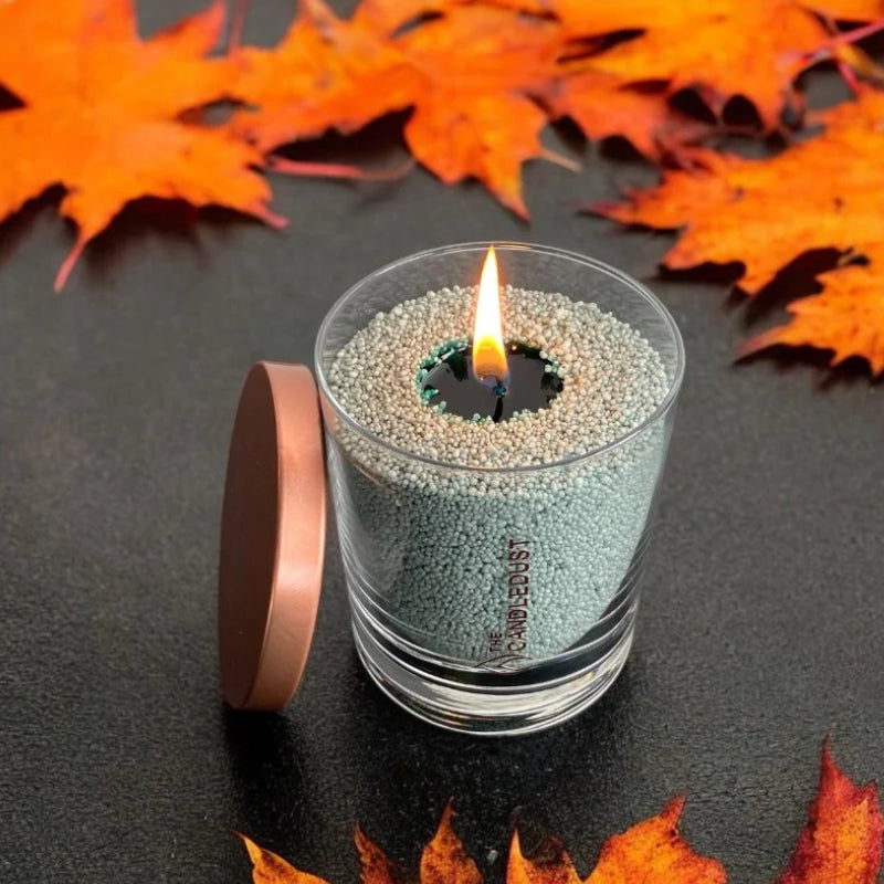 Kerzensand ist ein feinkörniges Wachs, mit dem du deine Kerze ganz nach deinen Vorstellungen gestalten kannst – wähle einfach den Behälter, die Größe und setze den Docht.