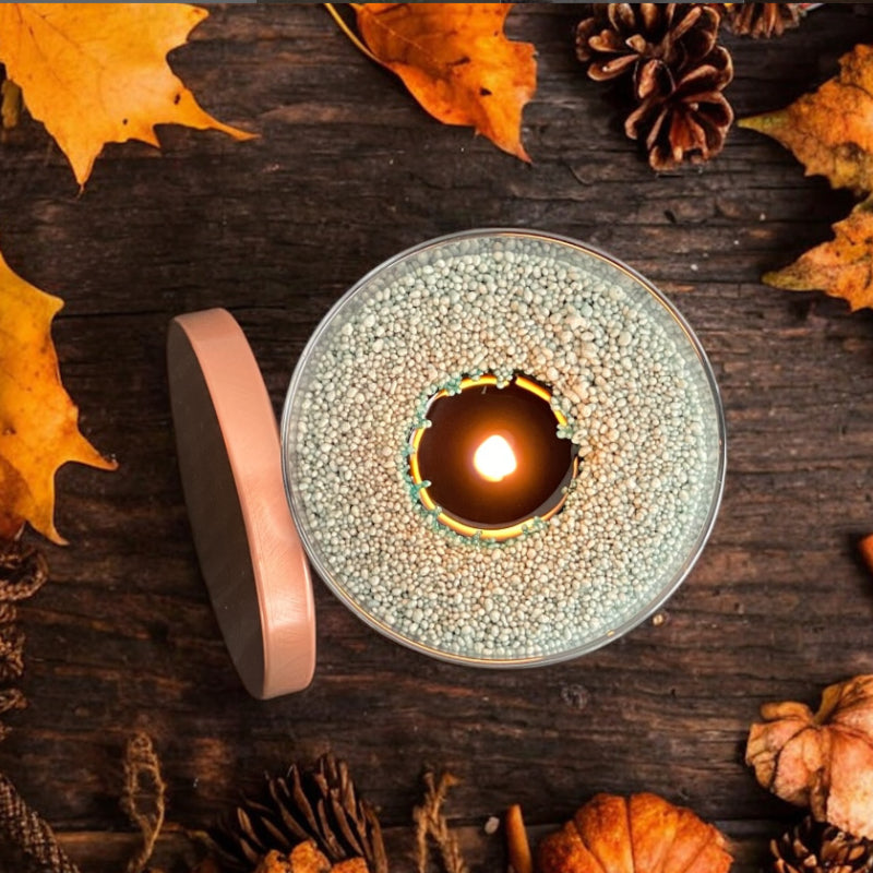 Das Pulver besteht aus pflanzenbasiertem, umweltfreundlichem Wachs. Beim Nachfüllen entsteht kaum Abfall – du verwendest die gleichen Behälter immer wieder und füllst einfach nach oder wechselst den Duft, wenn dir danach ist.