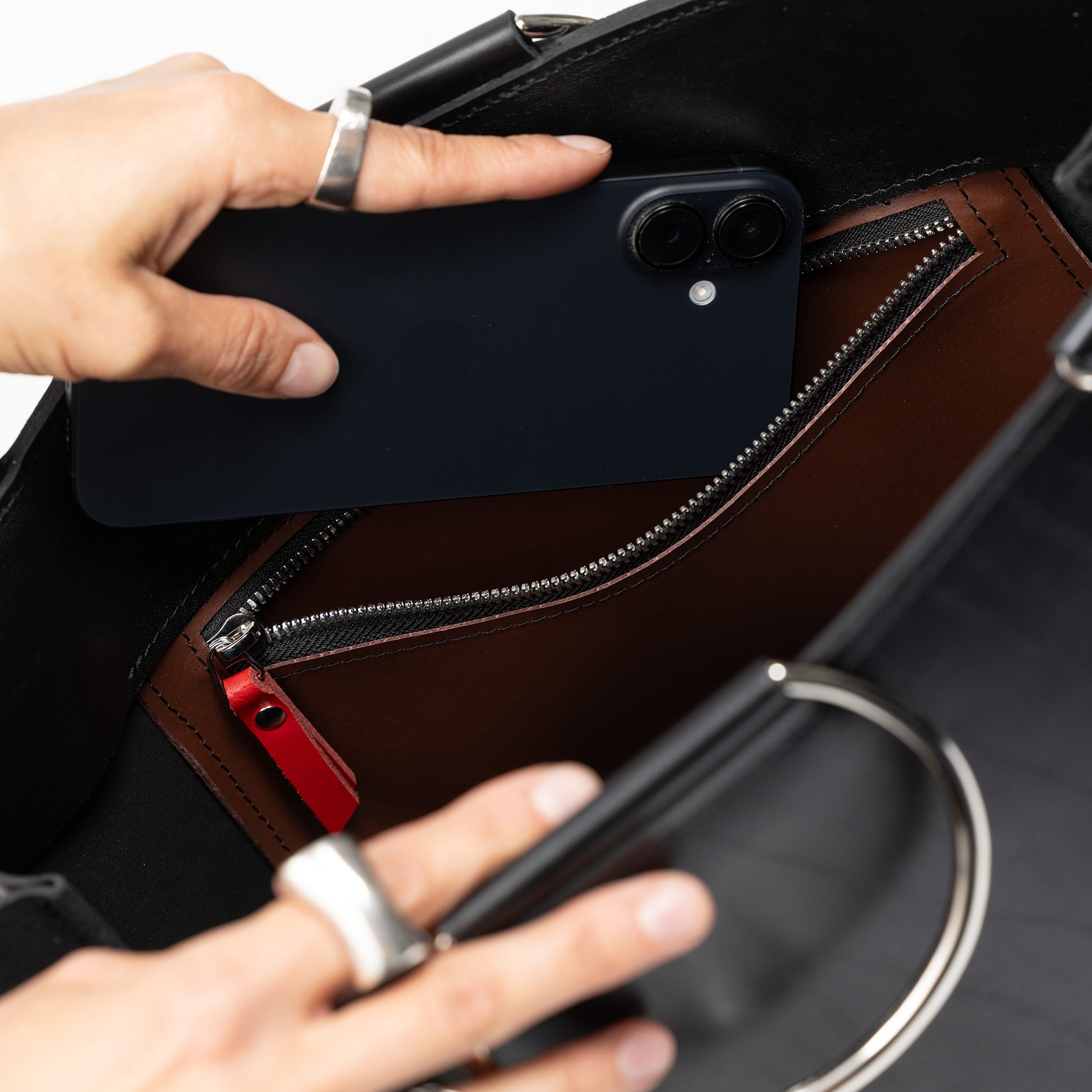 The PETRA handbag combines sophistication with everyday practicality. Crafted from structured leather that holds its shape, it’s designed to elevate any outfit while fitting seamlessly into a modern routine. Spacious enough for a laptop or documents, PETRA moves easily from work to evenings out.